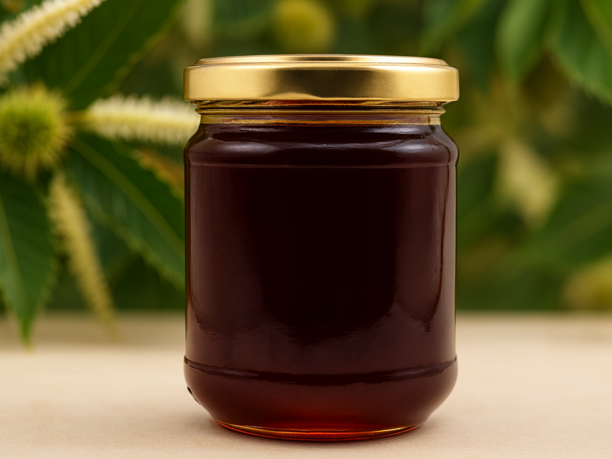 Ce miel se distingue par sa robe ambrée très foncée, son arôme boisé et sa légère amertume persistante en bouche. Moins sucré que le miel d’acacia, il offre un goût puissant et nuancé, apprécié des connaisseurs.