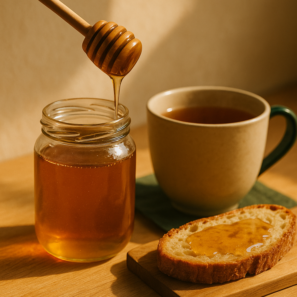 Dans la tasse, il arrondit le rituel. Sur la tartine, il adoucit le matin. Le miel vous ramène aux sens, au geste, à ce qui est réel.